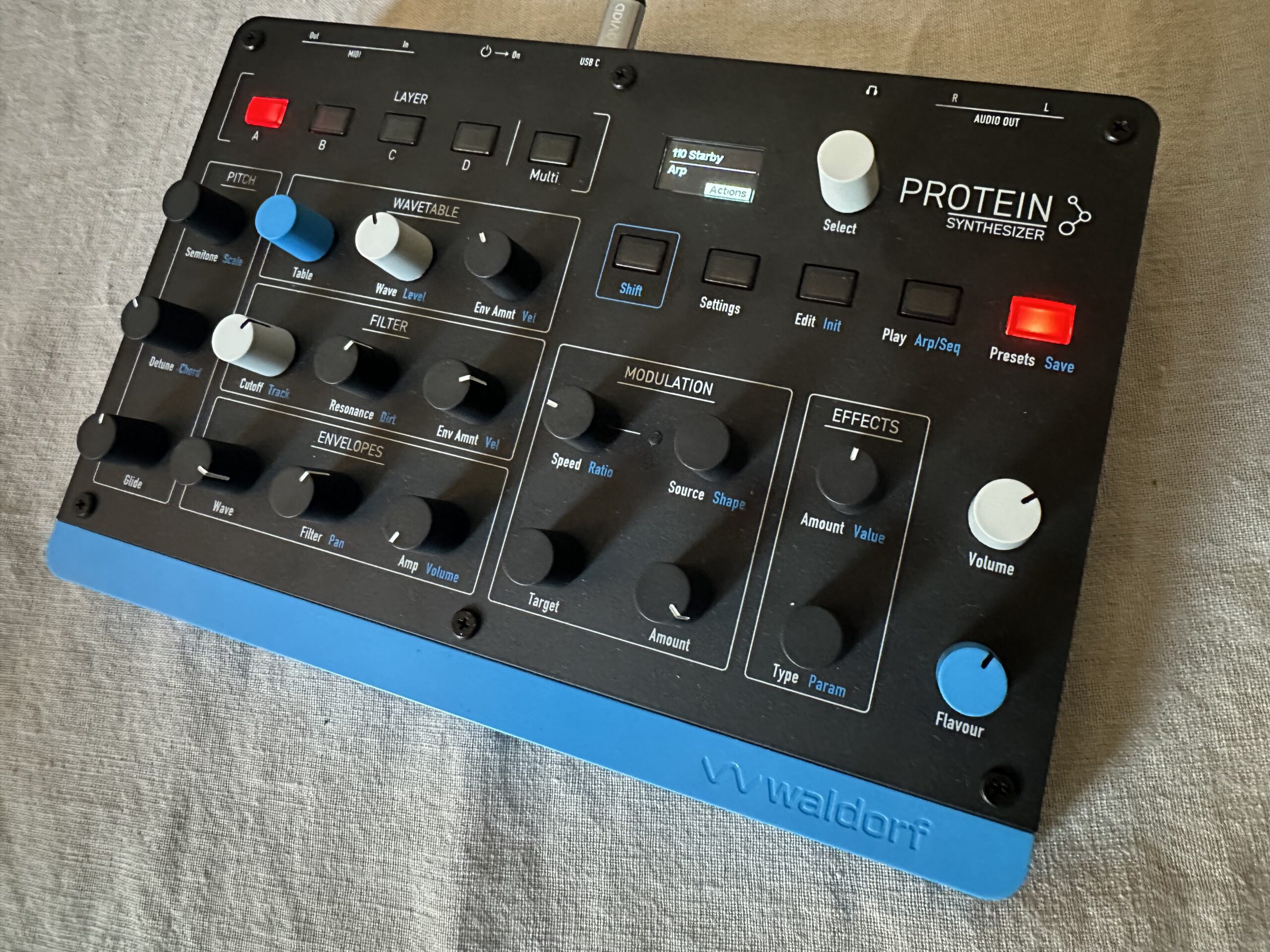 ちょうどそんな感触を思い出していた時期に、Waldorf の新しいシンセ Protein に触れる機会があった。